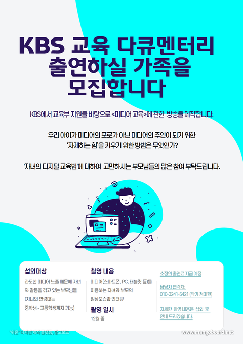 1. 섭외대상: 자녀의 과도한 미디어 노출로 고민하고 계신 부모님들
