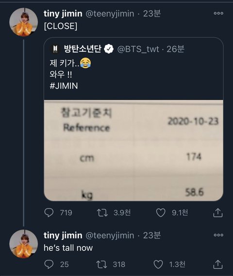 와중에 팬계정 클로즈 사유ㅋㅋㅋㅋㅋㅋㅋㅋㅋㅋㅋㅋㅋㅋㅋㅋㅋㅋㅋㅋㅋㅋㅋㅋㅋㅋㅋㅋㅋㅋㅋㅋㅋㅋ Tiny 지민 아니곸ㅋㅋㅋㅋㅋㅋㅋㅋㅋㅋㅋ He’s Tall이랰ㅋㅋㅋㅋㅋㅋㅋㅋㅋㅋㅋㅋㅋㅋㅋㅋㅋ