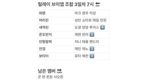 내가 요즘 현생때문에 소식 받기가 너무 어려워서 잘 모르겠는데 릴레이브이앱 전에 컴백브이앱 때 했던 그 조 맞아? 그리고 전에 127이 했던 24시릴레이캠같은거 아니지?ㅠㅠ