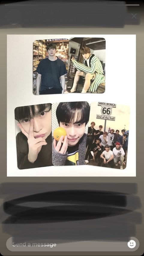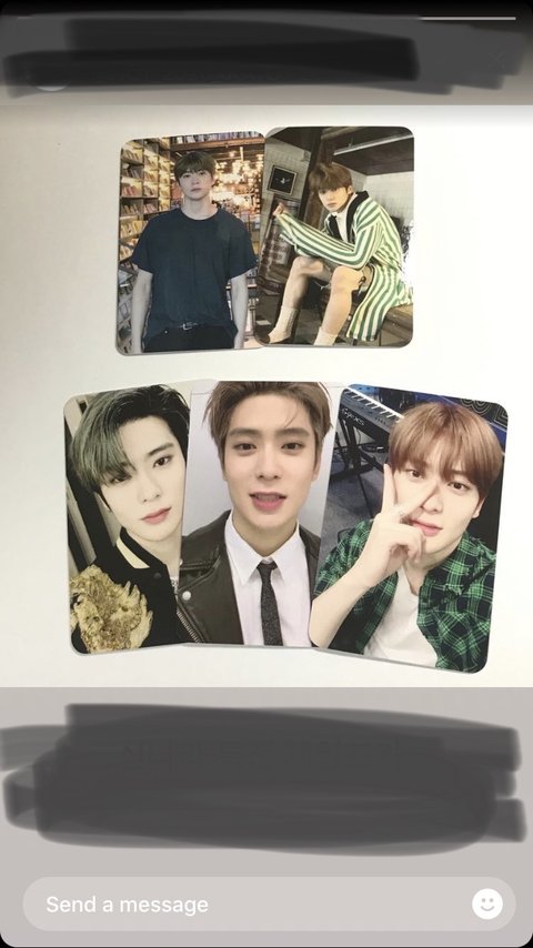 위에는 재혀니만 있고 저중에 랜덤 두개에 다른 엽서 두개 준다고 하구 아래도 랜덤 두개에 엽서 두개래 근데 특전 재고가 떨어질 경우 특전 받고싶으면 돈 0.1 더 내야한대서.. 즈니들 생각은 어때?? 미안 ㅠ 공구가 첨이라..그리구 재혀니만 있는 특전이랑 재현이,도영이,127 있는 특전 중 골라주라ㅜㅜ