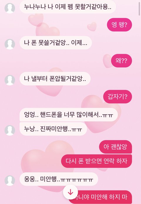 자기가 미안하다고 그동안 폰압때매 못했다고 그래서 그냥 저냥 넘어갔음 그 후로 페메 많이 했고 내가 잘생긴애 있다하면 걔가 질투도 하고 나 좋아한다고도 하고 막 이런식으로 티를 내다가 갑자기 언젠가부터 연락도 잘 안보고 안하던 현씹을 하고 점점 멀어지려는거야 그래서 나도 포기하려고 했는데 오늘 모든 퍼즐이 맞춰짐..