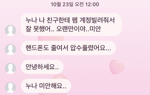 근데 얘가 점점 태도가 바뀜 점점 선펨도 안했고 말 이어가려고 하지도 않았음 그래서 밀당하는건가, 썸만 타니까 질렸나 했는데 얘가 어느날 갑자기 연락을 못한다고 하는거임 난 순간 ㅈㄴ 당황함 ;; 폰압때문이라던데 나중에 연락하자하고 갑자기 나를 차단함 ㅋㅋㅋㅅㅋ 그래서 기다렸는데 5일정도 지나서 페메가 옴