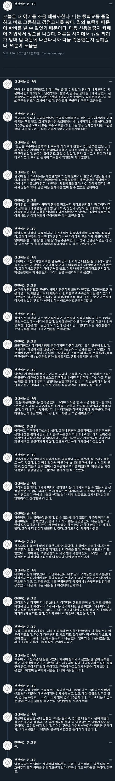 슬프다.. 왜 가난한 집 아이들은 대부분이 이런걸까.. 그냥 슬프다 안됐다 이게 아님.. 그 긴세월을 묵히고 묵힌 고독감.. 우리집도 이랬지. 장마에 팔지 못하게 된 공책을 얻어쓰고. 남이 버린 쌀(깨진 유리 조각이 가득해서 엄마랑 골라내야했다)... 그나마 부모가 날 노비 취급해줘서 미련 없이 떠났지.