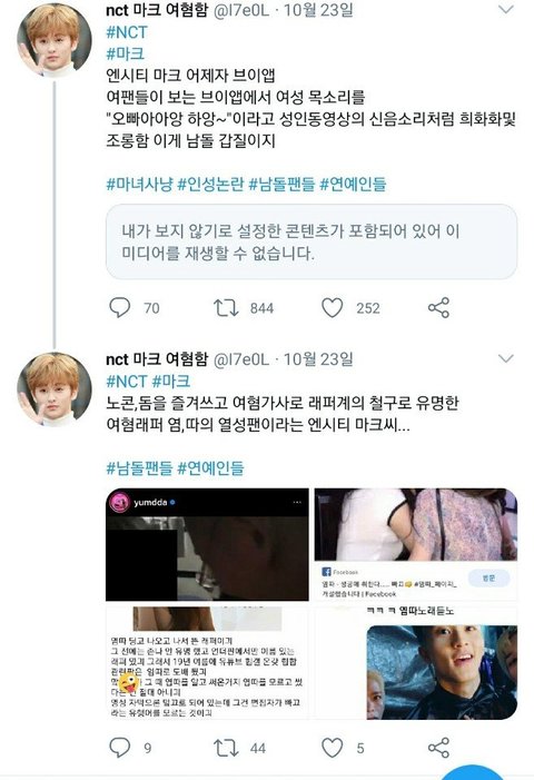 마크 여자목소리로 흉내내고 계속 오빠아앙 거린거도 물든게 아니라 마크가 염따란 래퍼 팬이라서 그런거임