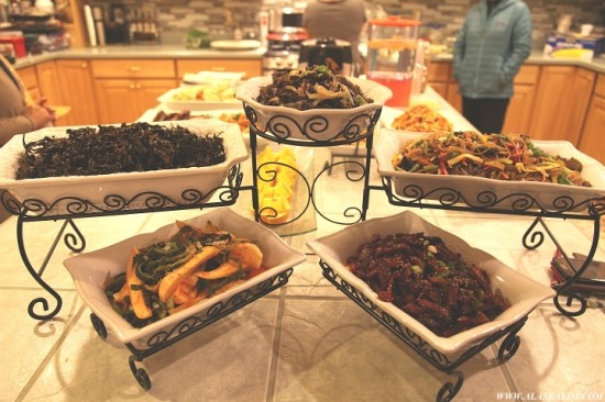 그 외에도 총각김치와 버섯무침, 잡채 등이 있고