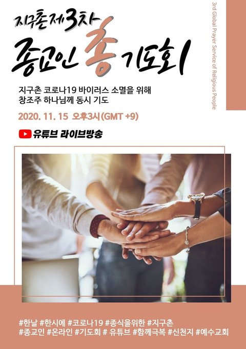 오늘 코로나 종식을 위한 제3차 온라인 종교인 기도회가 개최되었습니다.