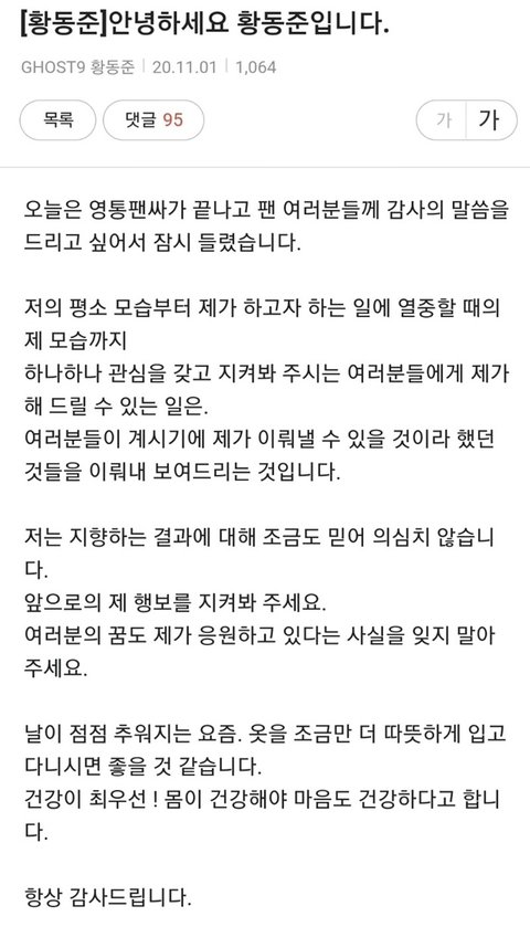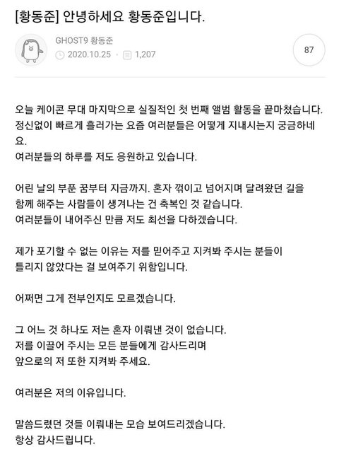 나 이렇게 글 쓰는 아이돌 처음 보는 것 같아