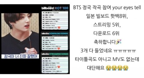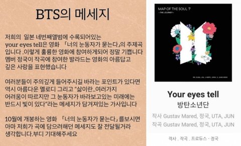 방탄소년단 정국 작곡 your eyes tell 일본 영화 OST 선정 + 일본 4집 수록곡 등재
