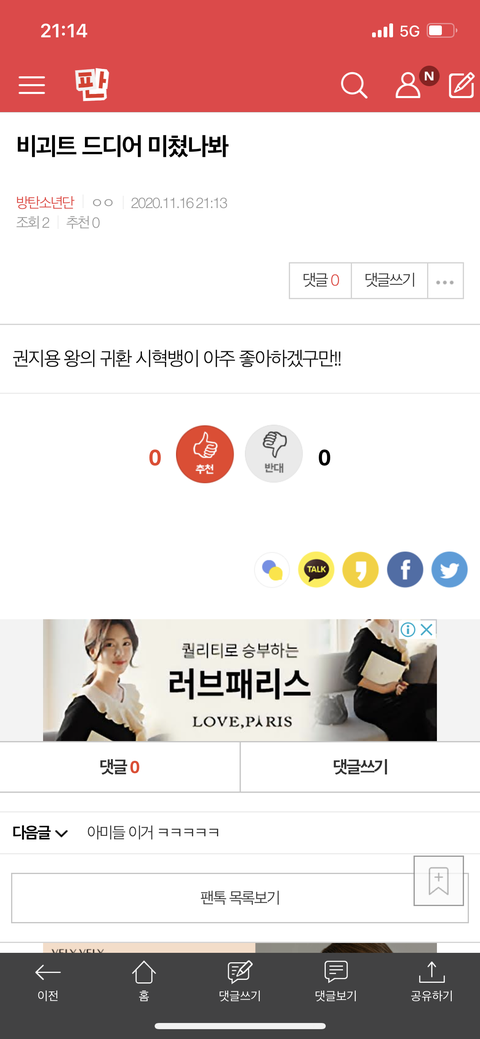 비괴트 드디어 미쳤나봐