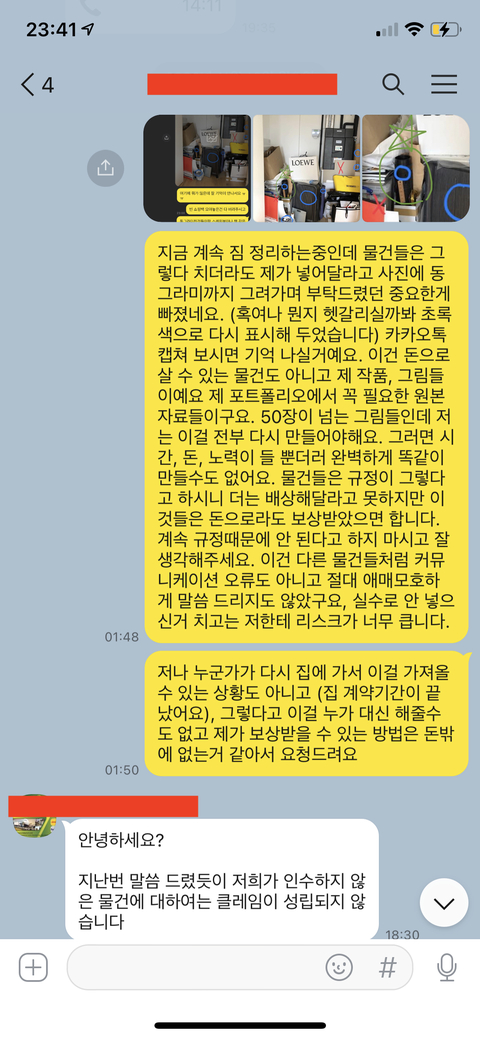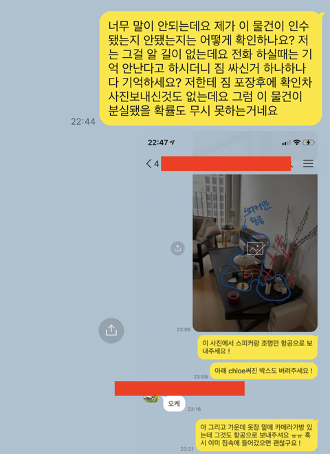비대면으로 대신 짐을 포장해주셨기 때문에 카카오톡으로 모든 커뮤니케이션을 진행 하였고