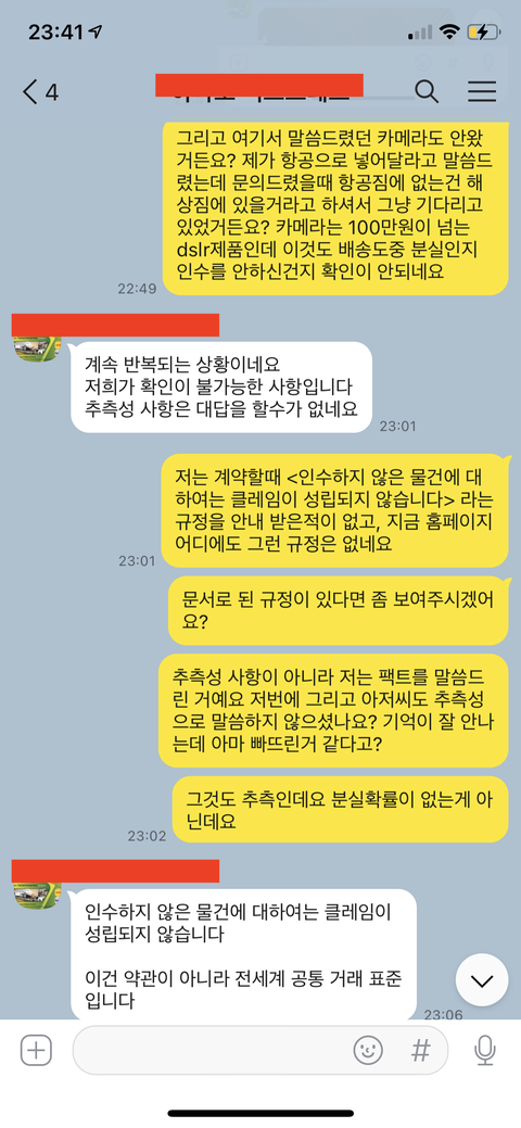 하지만 돌아오는 답변은 똑같았구요, 저는 이 문제에 대해서 꼭 보상받고 싶습니다. 카카오톡 대화내용 첨부합니다.