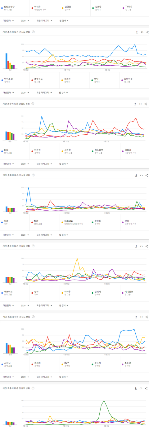 2020년 한국에서 가장 많이 검색된 가수 TOP30