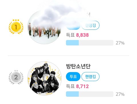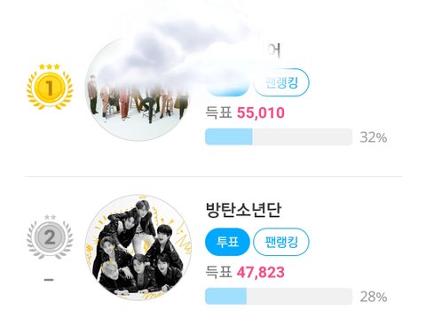 1퍼차에서 동률로 올라왔지만 득표차이로 2위 유지중