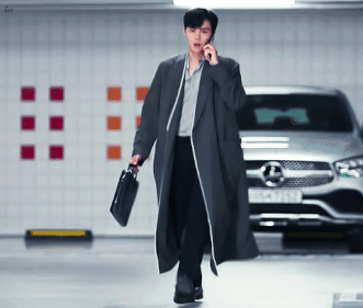 롱코트 입고 주차장 런웨이 걷는 한지평