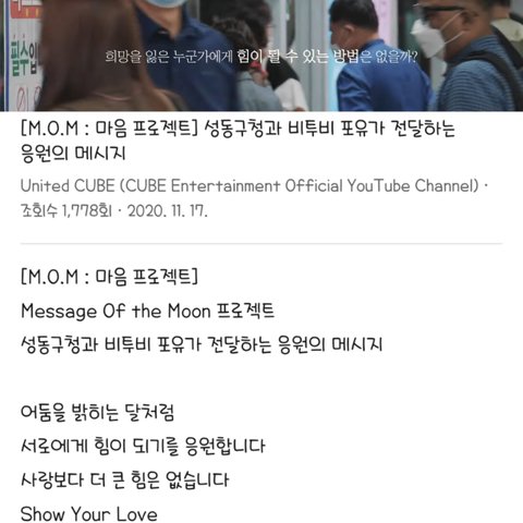 성동구청과 함께한 희망 캠페인 '마음 프로젝트'도 한번씩 봐줘♥