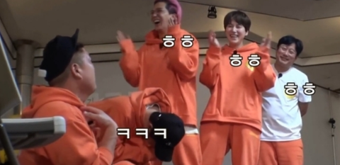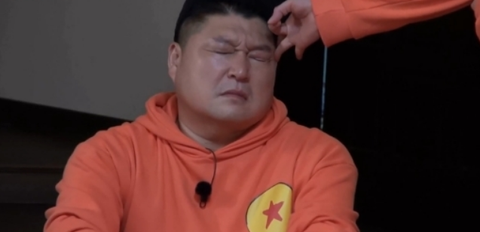 은지원에게 딱밤을 맞고 엄청 아파하는 강호동