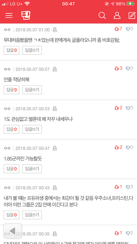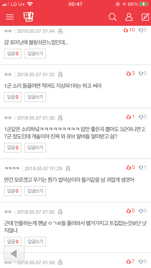 이때 판을 안 했어서 몰랐는데 다들 별로 안 좋아했네