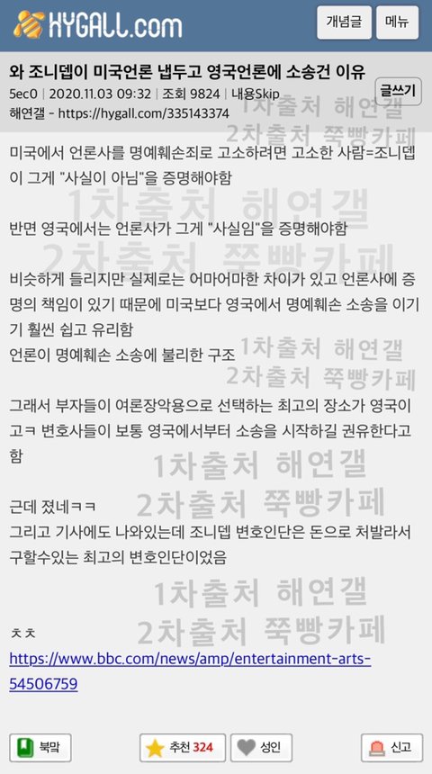 조니뎁 편들면서 엠버허드 욕한 판녀들 반성해