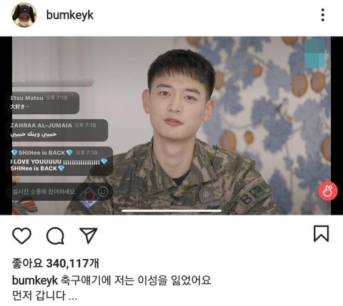 [단독] 샤이니 키, 전역 브이앱에서도 계속되는 민호의 축구 이야기에 질려 탈주해....