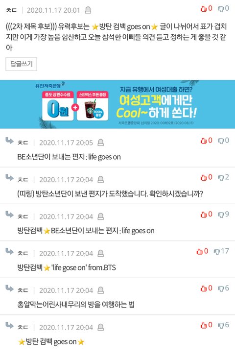 ㅇㅌ아미가 갠적으로 올린 제목이랑 이삐들