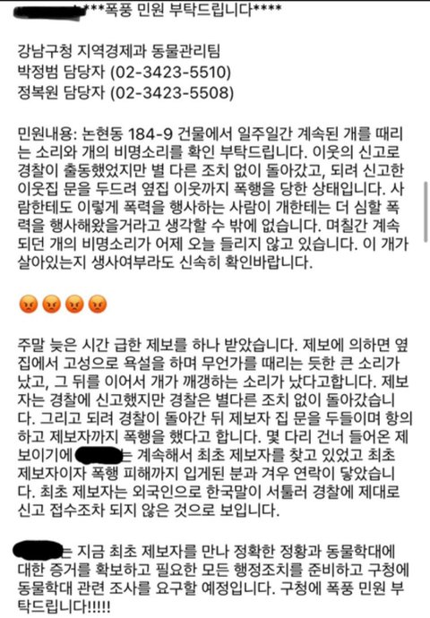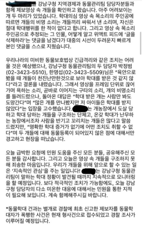 강남구청 동물관리팀에 민원 넣어 직무에 대한 태도를 바르게 잡도록 모두 도와주세요