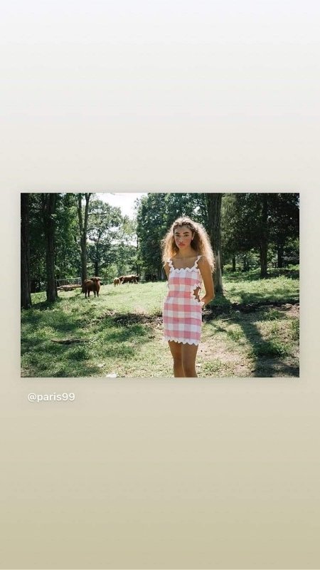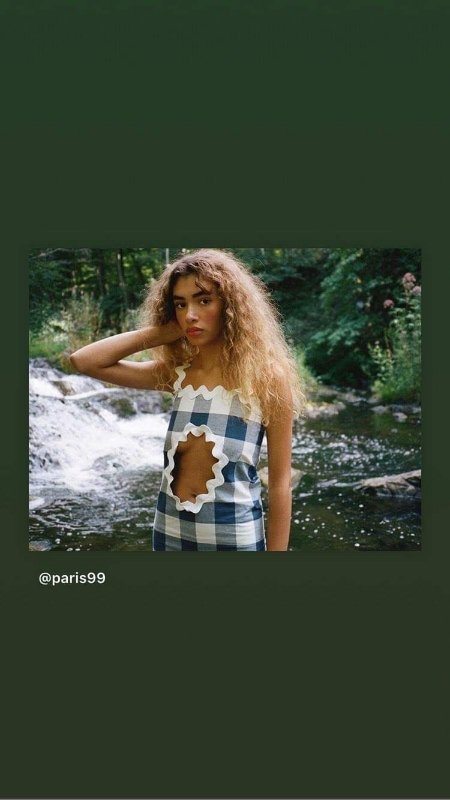 짧은 라이더자켓, 배에 착용한 허리띠, 치마 윗부분 양옆 접힌 부분까지 그대로 카피