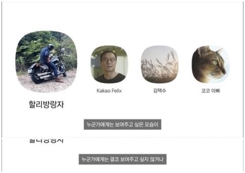 사실 짝남이랑 톡 하고 있는데 저거 도입되면 먼가 다른 프로필은 못본다는 생각에 아쉬움...ㅜ