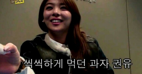 처음 본 사람인데도 친근하게 먹고 있던 과자 권유하는 에일리