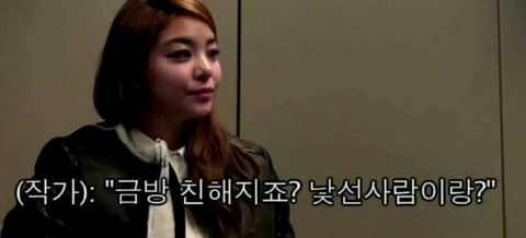 작가가 낯선사람이랑 금방 친해지는 편이냐고 물어봄