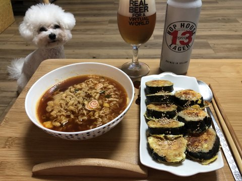 김밥전과 라면으로 한끼 뚝딱 빠질수 없는 맥주까지