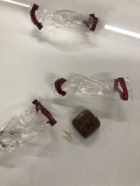 검은 가루가 막 떨어지더니 대수롭지 않게 생각했는데 입에서 뭔가 꿈틀 하기에 뱉으니 구더긴지 애벌렌지 ....?