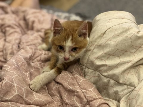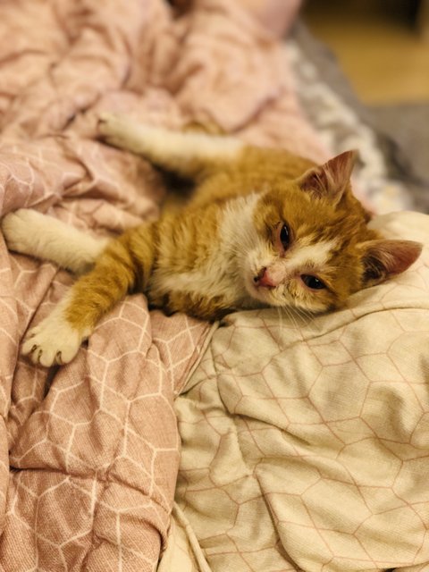 처음 왔을때의 꼬질꼬질한 두렁이, 추웠는지 이불위에 두니까 졸더라구요