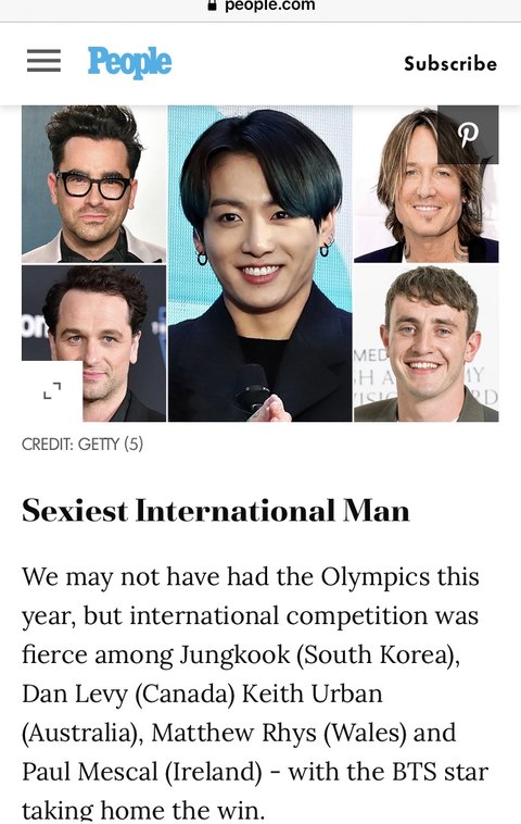 Sexiest International Man부문에 1위로 선정됨