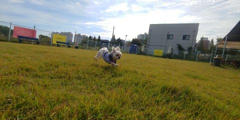 난 요새 엄마가 개치원에 보내서 다니고 있는데, 너무 신이나서 있지 맨날 칭구들이랑 뛰어댕기느라 바빠~