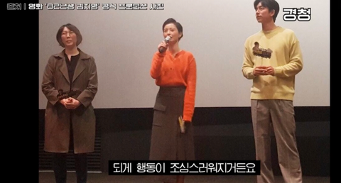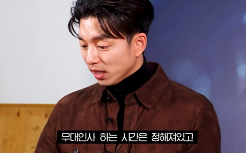 이어 공유가 무대 인사에서 다른 배우분들이 마이크를 잡고 인사할 때,