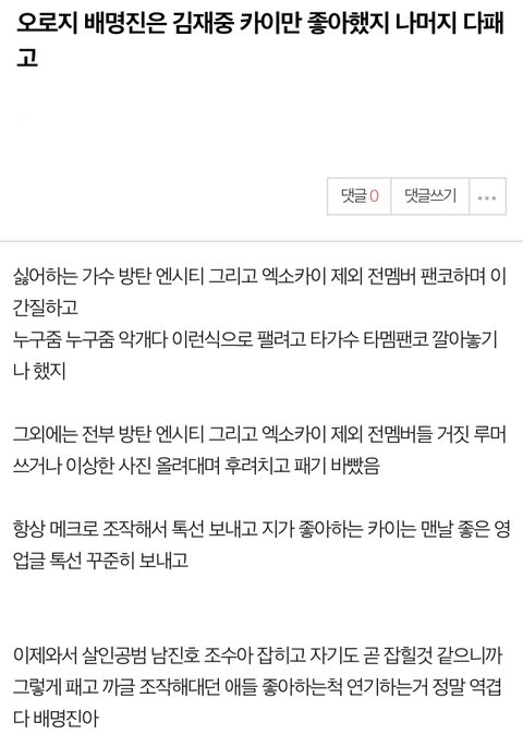 후배돌 사건주작해서 인생 종치려고 든 그 일 실제 주범임