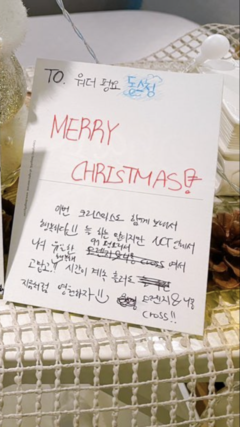 뒷북인데 윈윈이는 안 그렇게 생겨서 완전 평균 남자들이 쓰는 글씨체 같고 천러는 걍 초딩임 ㅋㅋㅋㅋㅋㅋㅋㅋ 재현이는 글씨체 나보다 예뻐.. 글씨체, 편지 내용에 성격 보이는 거 ㄱㅇㅇ 엥씨리 사랑해❤️❤️