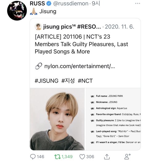 지성이가 좋아한다고 한 가수분 트윗해주셨당