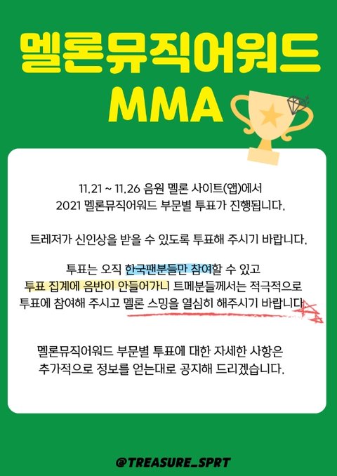 얘들아얘들아 멜뮤 신인상 트레저 투표해조 ㅠㅠㅠ