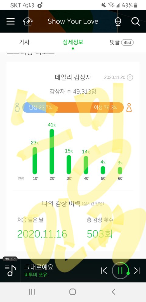 물론 차트 개빡빡해서 올라가기 힘든건 사실이지만...그래도 스밍 놓지말자 우리