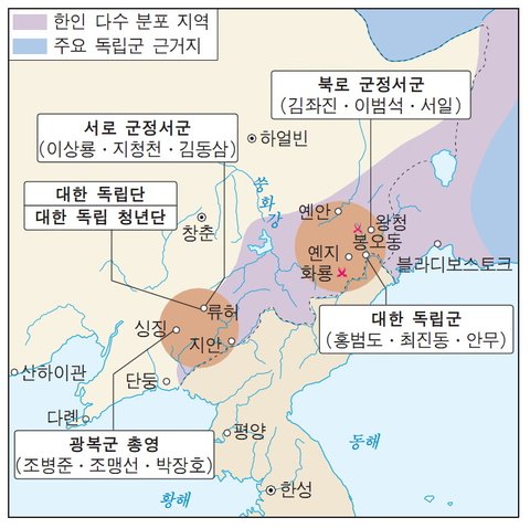 주요활동 : 항일투쟁, 군대양성, 군사훈련, 청산리전투