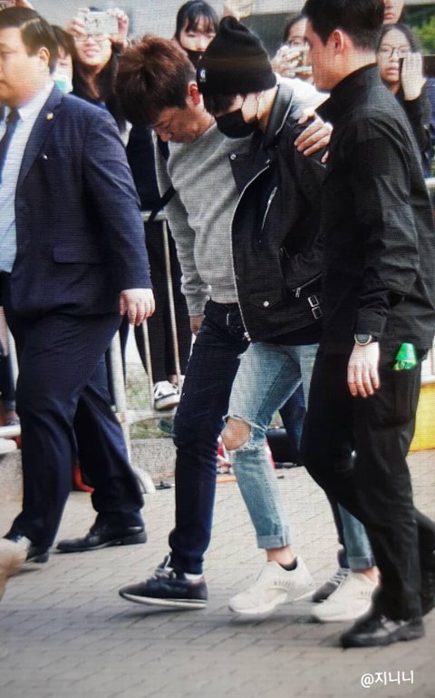 정국이 바닥에 있는 것 때문에 미끄러진 것 같은데 팬들 걱정할까봐 괜찮다고 오케이 해줬어ㅠㅠ아 너무 아플거 같은데