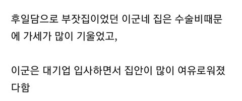 와 근데 진짜 머리가 유전이 있긴 한가보다 부자집 아들은 아려운 환경에도 혼자 공부해서 전교1등하고대학가고 가난한 집 아들은 지원이 저렇게 빵빵한데 성적 부진,,, 대치동 애들 대학 잘 가는거 지원도 무시 못 하지만 부모님이 의사인 애들은 타고난 공부머리 무시 못 해