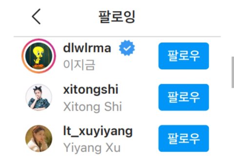 이거는 타오 팔로우 목록인데 최근에 정리해서 3명인거 같아