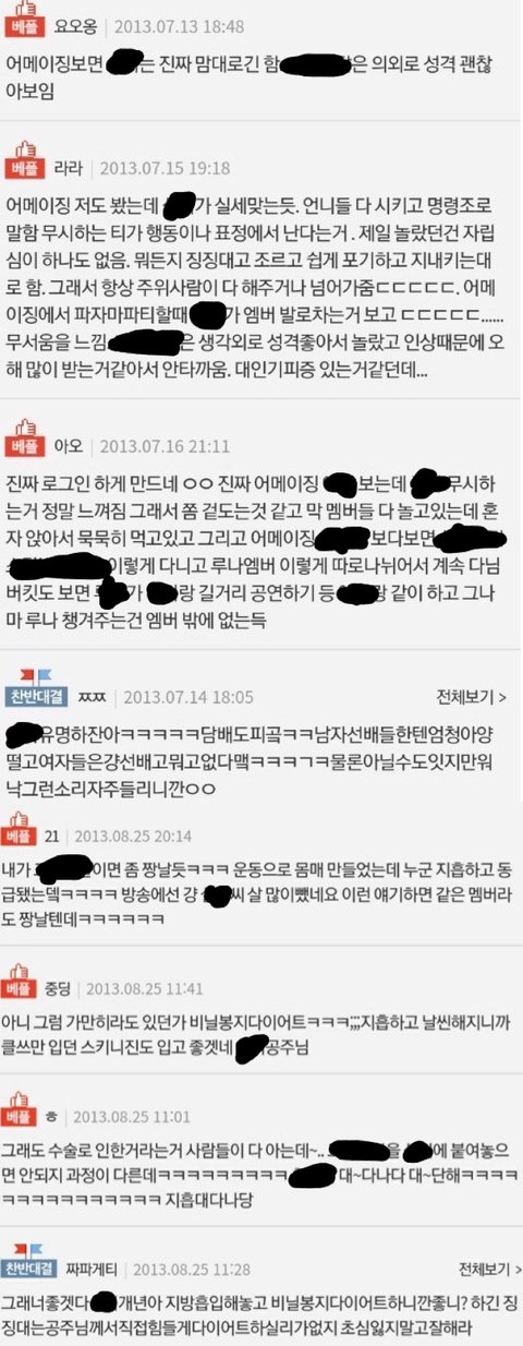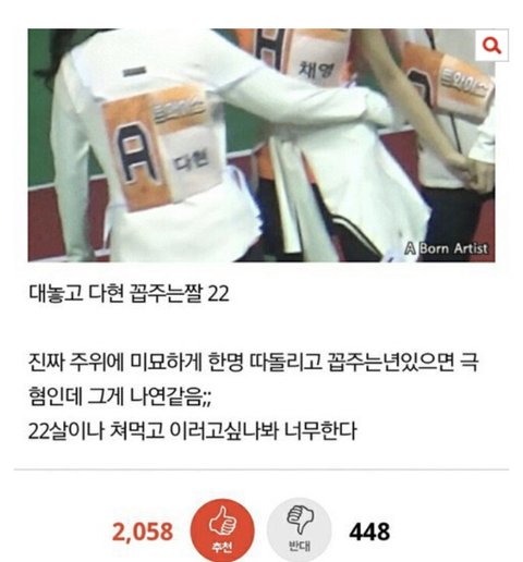 니들이 그동안 팼던 여돌 까글좀 보고 정신차려라 ㅋㅋ 저기 나온 여돌 팬들 마음아플까봐 이름이랑 사진은 가려서 올릴게