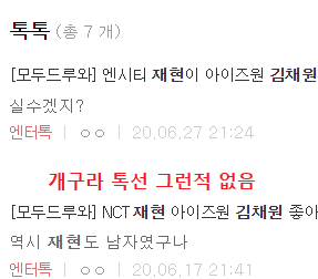 몇주전까지 그렇게 민나현 각각으로 팬코하고 이간질하더니