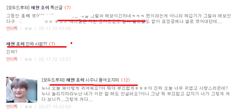 사랑스러워한다고 글보면 옆에만 있어도 사귀는거고 티내는거라면서 재현이랑 상대여돌분 다까고 있음