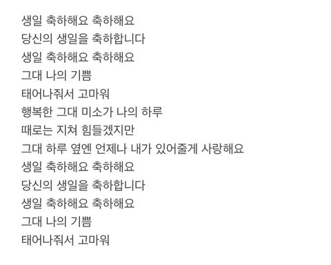 +) 이제 막 브이앱 끝났는데... 진짜 감동적인게 좋은 것만 들려주고 싶고 해달라는건 다 해주고 싶대.. 제목 정할때도 11월 22일(자기 생일)이 아니라 좀 더 포괄적으로 짓고 싶대.. 자기 기타 실수하고 그러는건 못참으면서 캐럿들이 가사 쓰는건 다 좋고 아름다운 말이고... 25번째 생일을 소중한 사람들과 생일 축하곡을 만들어서 너무 좋대 아ㅠ
