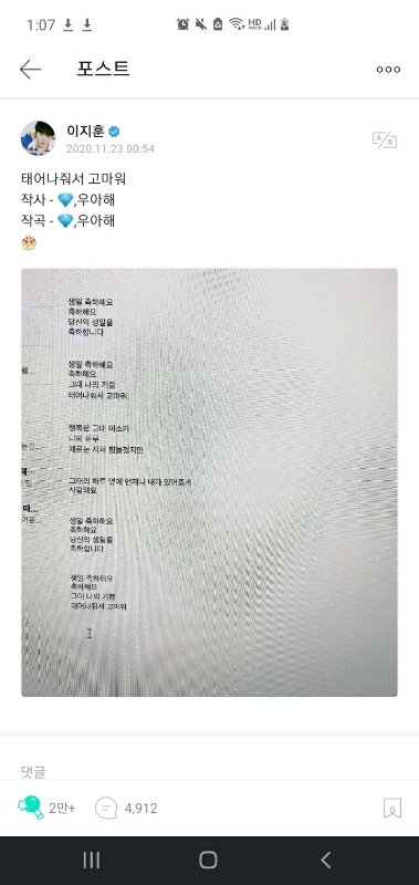 진짜 이ㅜ다정한 사람....생일은 자긴데 우리가 생일 선물을 받아버렸어 이 찐천재다정맨 사랑해 생일 축하해 너는 캐럿의 보물이야