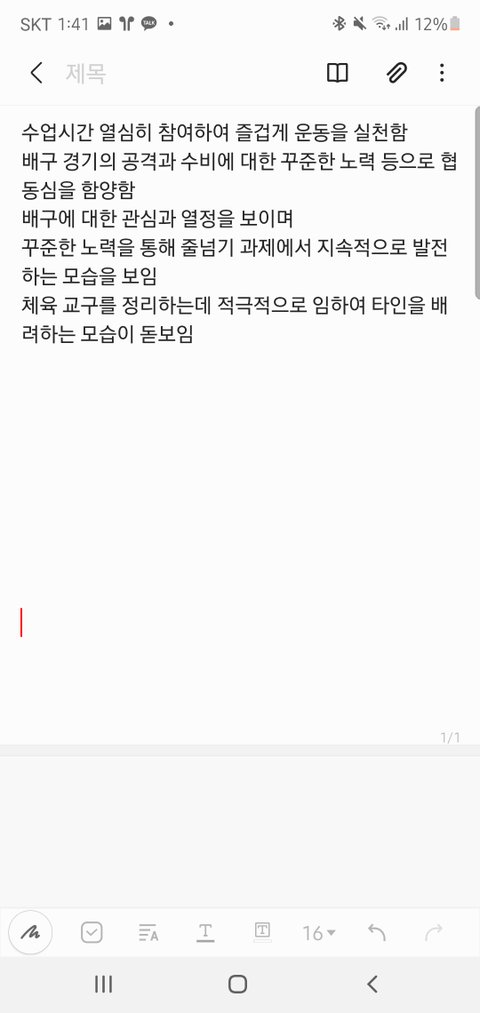 체육세특 써오라고 해서 쓰고잇다는앤데